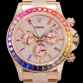 레플리카 [로렉스]남성용 데이토나 오이스터 라인보우 와치 보석/큐빅 세팅 4130타입 무브튜닝 40mm 올금/통금 로즈골드 블랙 다이얼 ROL87026