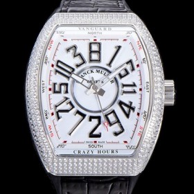 • 레플리카 [프랭크뮬러] 남성용 뱅가드 오토매틱 CZ02타입 44미리 보석/큐빅 셋팅 가죽줄/스트랩 화이트다이얼 FRA73768