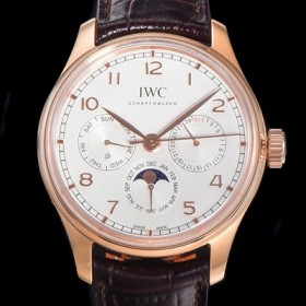• 레플리카 [아이더블유씨] 남성용 포르투기즈 IW344202 퍼페추얼 캘린더 문페이즈 오토매틱 42mm Cal.82650 타입 18K 로즈골드 가죽줄 화이트다이얼 iwc25810