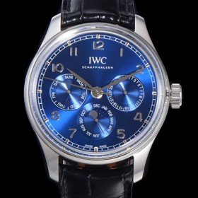 아이더블유씨 포르투기즈 퍼페추얼 캘린더 문페이즈 오토매틱 42mm Cal.82650 타입 남성용 가죽줄 블루다이얼  iwc045060715