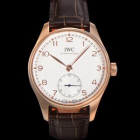 IWC Men's Portuguese Automatic Modified 82200 Type Movement 40.4mm 18K Rose Gold Leather Strap White Dial