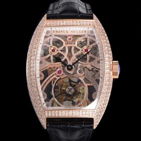 레플리카 [프랭크뮬러] 남성용 그랜드 컴플리케이션 8889 TG SQT BR 수동기계식 투어빌론 55mm 보석/다이아 셋팅 금장시계 가죽시계 스켈래톤 다이얼 fra48923