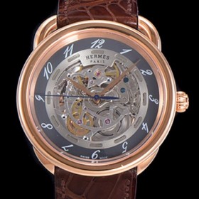레플리카 [애르메스] 남성용 아쏘 오토매틱 41mm 18K 로즈골드 가죽줄 스켈래톤 다이얼 her07859