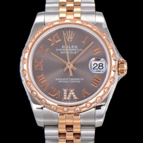 • 레플리카 [로렉스] 여성용 데이져스트 로즈골드 2836오토매틱 31mm 보석/다이아 베젤 메탈줄 5열밴드 브라운다이얼 rol05183