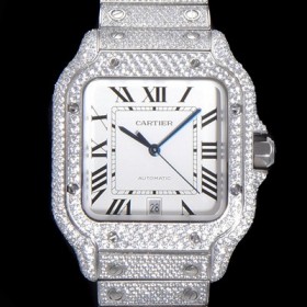 Cartier Men's Santos Jewel Diamond Set Bezel 40mm White Dial Automatic Movement