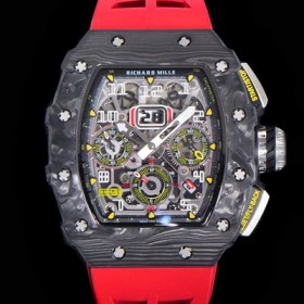 • 레플리카 [리차드밀레] 남성용 플라이백 RM11-03 오버사이즈 데이트 크로노그래프레드 포지드 카본 케이스 스켈레톤 다이얼 오토매틱 무브먼트 RIC08701