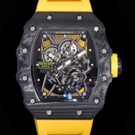 • 레플리카 [리차드밀레] 남성용 라파엘 나달 RM35-02 파트너십 기념 에디션!! 칼리버 RMAL1 100% 포지드 카본 케이스 스켈레톤 다이얼 오토매틱 무브먼트 RIC09600