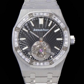 • 레플리카 [오데마피게] 남성용 로얄오크 Calibre 2924 투어빌론/수동기계식 41미리 금장 18K로즈골드 블랙다이얼 AUD75252
