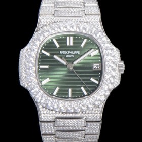 Patek Philippe Men's Nautilus Gemstone/Cubic Setting Automatic Cal.324 S C Type 40mm Green Dial