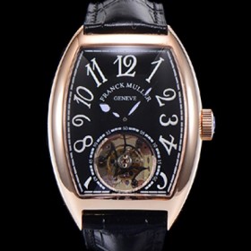 • 레플리카 [프랭크뮬러] 남성용 그랜드 컴플리케이션 뚜르비용 18K 로즈골드 가죽줄 블랙다이얼 FRA70350