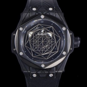레플리카 [휴블렛] 남성용 빅뱅 쌍 블루 티타늄 PVD 오토매틱 HUB1213타입 45미리 가죽/우레탄 믹스밴드 블랙다이얼 hub38783