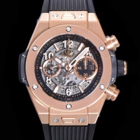 • 레플리카 [휴블렛] 남성용 빅뱅 유니코 킹골드 크로노그래프 421.OX.5180.RX 로즈골드 HUB1280 오토매틱 므브먼트 44mm 러버밴드 스켈레톤 다이얼 hub38959
