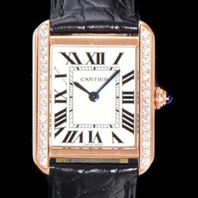레플리카 [까르띠에] 여성용 탱크 WJTA0011 로마 인덱스 31mm 화이트 다이얼 커플용 로즈골드 악어가죽 쿼츠 무브먼트 CAR01574