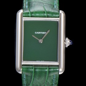 • 레플리카 [까르띠에] 여성용 탱크 머스트 WSTA0054 로마 인덱스 33.7mm 그린 다이얼 악어가죽줄 쿼츠 무브먼트 CAR00575