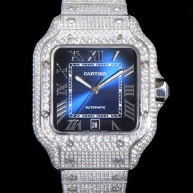 레플리카 [까르띠에] 남성용 산토스 쥬얼 다이아몬드 셋팅 베젤 40mm 네이비 다이얼 오토매틱 무브먼트 CAR46569