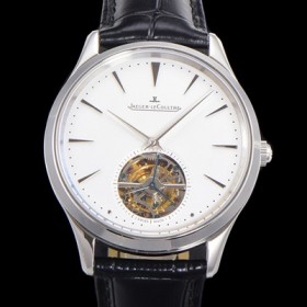 레플리카 [예거 르꿀르뜨] 남성용 마스터 울트라 씬 투어빌론 43mm 가죽줄 화이트다이얼 jag3991