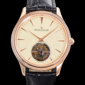 • 레플리카 [예거 르꿀르뜨] 남성용 마스터 울트라 씬 투어빌론 43mm 18K로즈골드 가죽줄 아이보리 다이얼 jag1292
