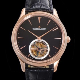 • 레플리카 [예거 르꿀르뜨] 남성용 마스터 울트라 씬 투어빌론 43mm 18K로즈골드 가죽줄 아이보리 다이얼 jag1925