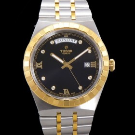 레플리카 [튜더] 남성용 로얄 워치 오토매틱 스위스 ETA2836-2 타입 18K 옐루골드 41mm 메탈줄 블랙다이얼 tud2191