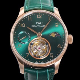 IWC Portuguese Tourbillon Moonphase Power Reserve Asian Tourbillon 42mm 18K RoseGold Mens Green Dial