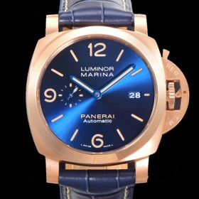 • 레플리카 [파네라이] 남성용 루미노르 1950 3데이 마리나 18K 로즈골드 PAM01114 오토매틱 44미리 블루다이얼 pan9121