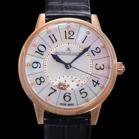 레플리카 [예거 르꿀르뜨] 여성용 랑데뷰 나잇&데이 문페이즈 오토매틱 898A 타입 무브 34mm 금장 가죽줄 자게 화이트다이얼 jag5123