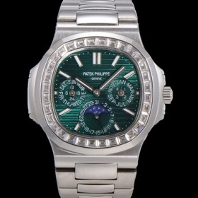 레플리카 [파텍필립] 남성용 Ref.5740 노틸러스 문페이즈 오토매틱 Cal.240 Q타입 40mm 다이아몬드/쥬얼 메탈줄  그린다이얼 pat1215