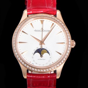 • 레플리카 [예거르꿀뜨르] 남성용 마스터 울트라 씬 문페이즈 39mm 오토매틱 866타입 18K로즈골드/다이아몬드 베젤 가죽줄 화이트다이얼 jag2319