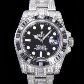 레플리카 [로렉스] 남성용 서브마리너 풀 다이아몬드 셋팅 오토매틱 Cal.3135 무브 40mm 블랙다이얼 rol5113