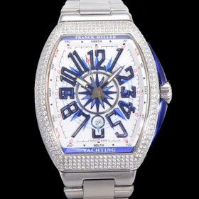 레플리카 [프랭크뮬러] 남성용 1:1수제공정 풀 다이아셋팅 뱅가드 오토매틱 ETA2824 타입 45mm 메탈줄 화이트다이얼 fra8028