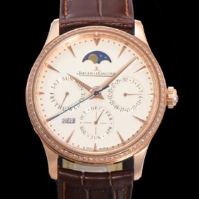• 레플리카 [예거르꿀뜨르] 남성용 마스터 울트라 퍼페추얼 캘린더 18K 로즈골드 오토매틱 MC868 타입 39mm 가죽줄 다이아몬드베젤 문페이즈 아이보리다이얼 jag20778
