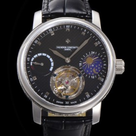 • 레플리카 [바쉐런콘스탄틴] 남성용 트레디셔널 투어빌론 오토매틱 문페이즈 44mm 가죽줄 블랙다이얼 vac05214
