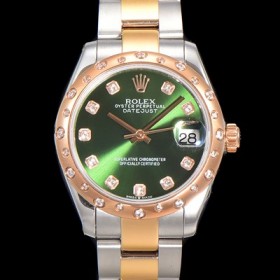 Rolex Date-Just Oyster Perpetual 31mm Ladies Automatic Diamond Bezel 18K Yellow Gold TWO-TONE Combi Green Dial