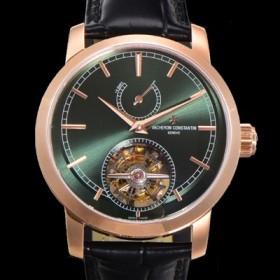 레플리카 [바쉐런콘스탄틴] 남성용 트레디셔널 투어빌론  자동형  18K 로즈골드 42mm 가죽줄 그린다이얼 vac23685