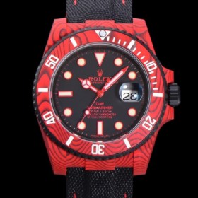 Rolex Men's Submariner 41mm Real Red Forged Carbon Automatic Cal.3135 Black Dial