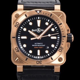 • 레플리카 [벨앤로즈] 남성용 BR03-92 다이버 브론즈 소재 오토매틱 9015 타입 42mm 가죽줄 블랙 다이얼 bel4093