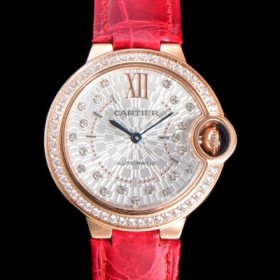 Cartier Women's New Ballon Bleu Crocodile Leather Band White Dial 33mm Automatic Movement