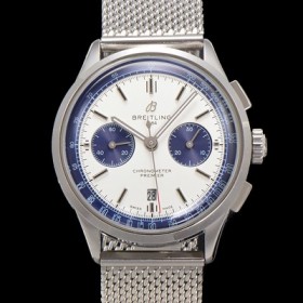 • 레플리카 [브라이틀링] 남성용 프리미에르 크로노그래프 7750 타입 오토매틱 42mm 메쉬밴드 화이트 다이얼 bre6013