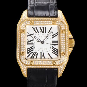Cartier Santos 100 Automatic ETA2824-2 Type 18k Yellow Gold/Jewelry Watch Men's 51mm Leather Strap White Dial