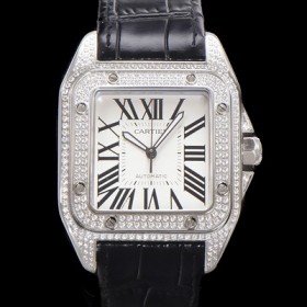 레플리카 [까르띠에] 산토스 100 오토매틱 ETA2824-2 타입 보석시계 남성용 51mm 가죽줄 화이트 다이얼 car69320