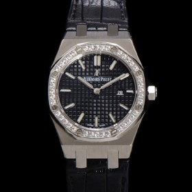 • 레플리카 [오데마피게] 여성용 로얄오크 67651ST.ZZ.D002CR.01 악어가죽줄 33mm 쿼츠 무브먼트 블랙 와플 다이얼 aud6516