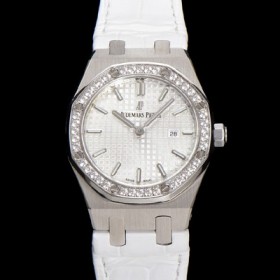 Audemars Piguet Women's Royal Oak Alligator Leather Strap 33mm Quartz Movement White Waffle Dial