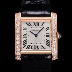 • 레플리카 [까르띠에] 남성용 탱크 WJTA0050 "프랑세즈 워치!!" 다이아몬드 미디엄 모델 로즈골드 쿼츠 무브먼트 악어가죽 화이트 다이얼 car69368