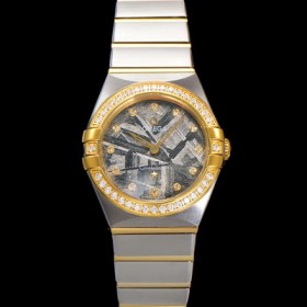 • 레플리카 [오메가] 여성용 컨스틀레이션 131.25.28.60.99.002 옐로우골드 다이아몬드 세팅 베젤 28mm 쿼츠 무브먼트 메테오라이트 다이얼 omg0148