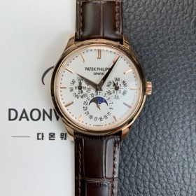 • 레플리카 [파텍필립] 남성용 퍼페추얼 캘린더 18K 로즈골드 5140 가죽줄 40mm 오토매틱 Cal.240 타입 화이트 다이얼 pat2245