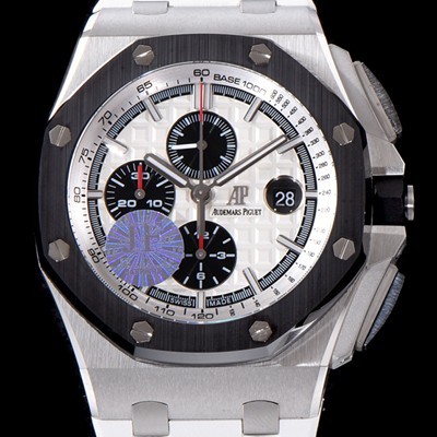 레플리카 [오데마피게] 남성용 로얄오크 오프쇼어 26400SO.OO.A002CA.01 블랙 세라믹 베젤 크로노그래프 화이트 와플 다이얼 오토매틱 무브먼트 AUD0212