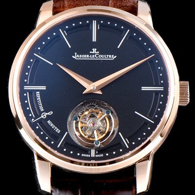 레플리카 [예거르쿨트르] 남성용 마스터 울트라 씬 1313520 미닛 리피터 플라잉 투르비옹 18K 로즈골드 블랙 다이얼 아시안 투어빌론 탑재 무브먼트 JAG0411