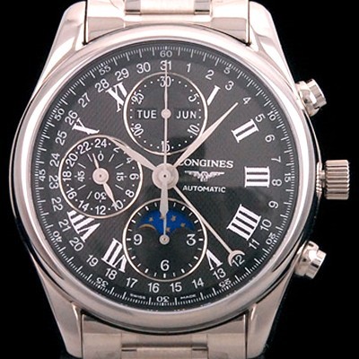 Longines TOP Grade Quality Watch Making Tradition!! Master Collection Moonphase Chronograph BEST Black Barleycorn Dial Automatic Movement