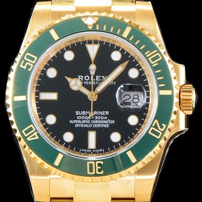 Rolex Submariner Green Ceramic Bezel 18K YellowGold Case Black Dial Bracelet Automatic Movement