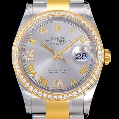 레플리카 [로렉스]남성용 데이져스트 오토매틱 36미리 18K 옐루골드 보석/큐빅 실버다이얼 3235무브 ROL26973